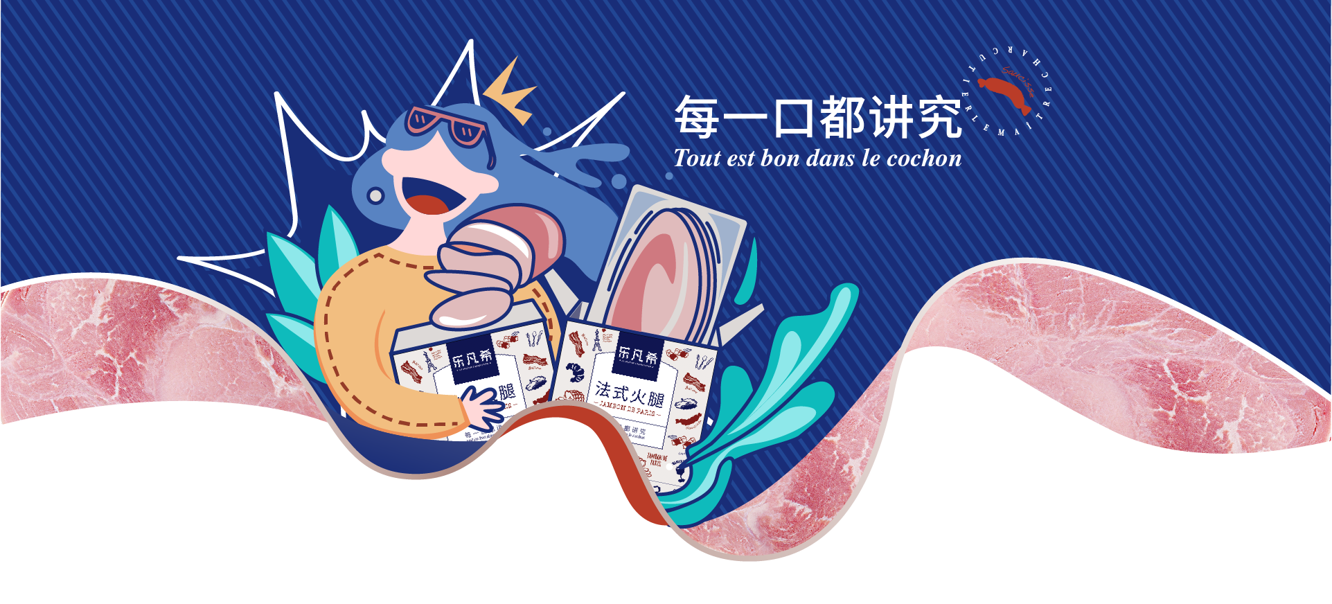 樂(lè)凡希是美好美得靈打造的具有法國(guó)背景的全新西式低溫豬肉制品品牌,把真材實(shí)料、優(yōu)選部位、法式標(biāo)準(zhǔn)、安全可溯的味覺(jué)享受帶給國(guó)人。通過(guò)強(qiáng)調(diào)“樂(lè)”字和“講究” 的品牌精神,結(jié)合品牌法文Le maître charcutier的翻譯:肉制品大師,呈現(xiàn)出一個(gè)富有趣味和信賴(lài)感的品牌。